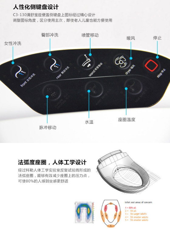法弧加宽型舒适座圈,符合人体工程学,更舒适