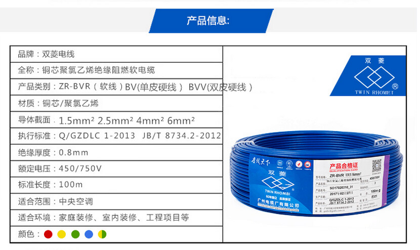 | 型号 | ZR-BVR | 线芯绝缘材质 | 聚*乙烯 | 线芯导体材质 | 无氧纯铜 |