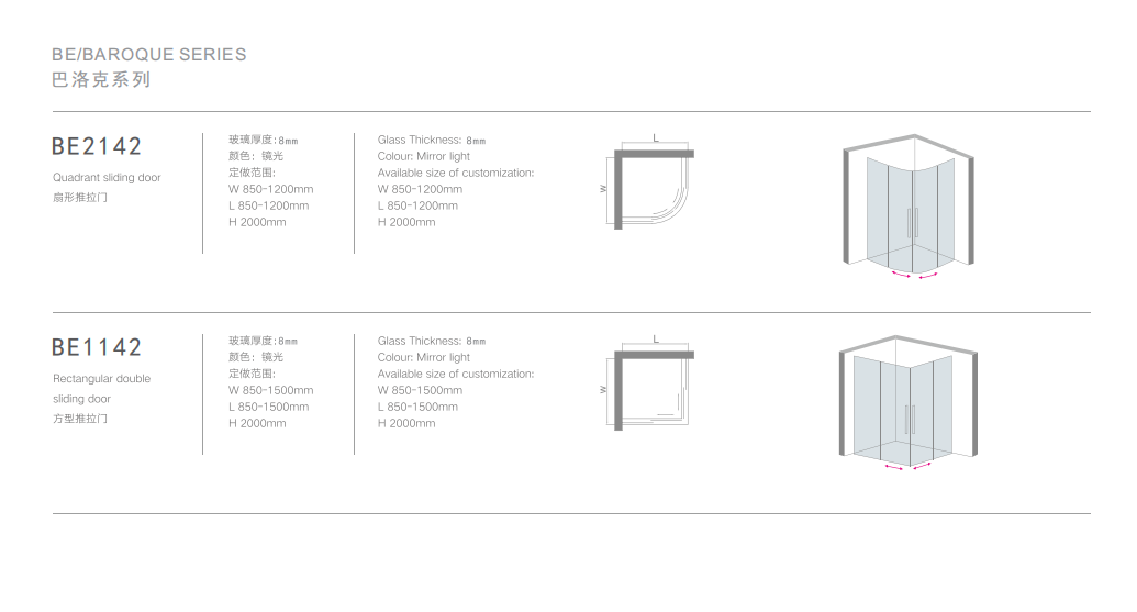 恒立卫浴 BE 巴洛克 系列 304不锈钢 淋浴房 巴洛克 BE2142、BE1142