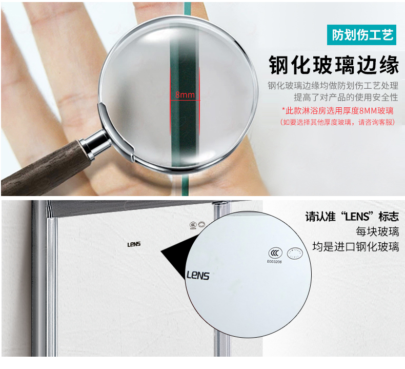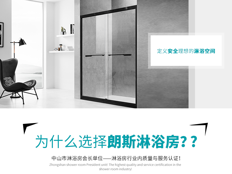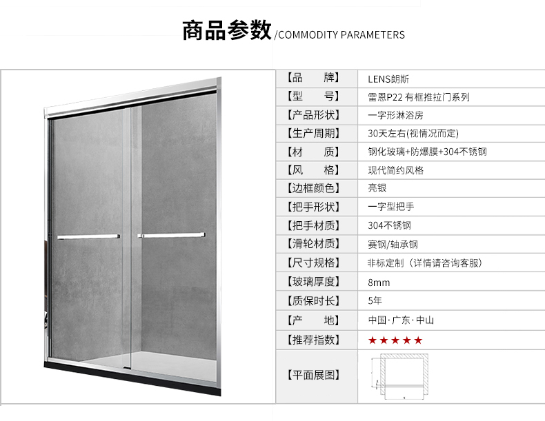 朗斯淋浴房定制一字形卫生间隔断干湿分离洗澡间钢化玻璃雷恩P22
