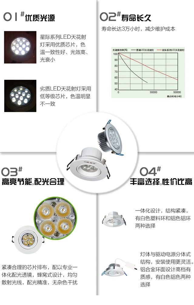 产品描述:LED天花射灯 星际 3W 24度 一体塑环 白色