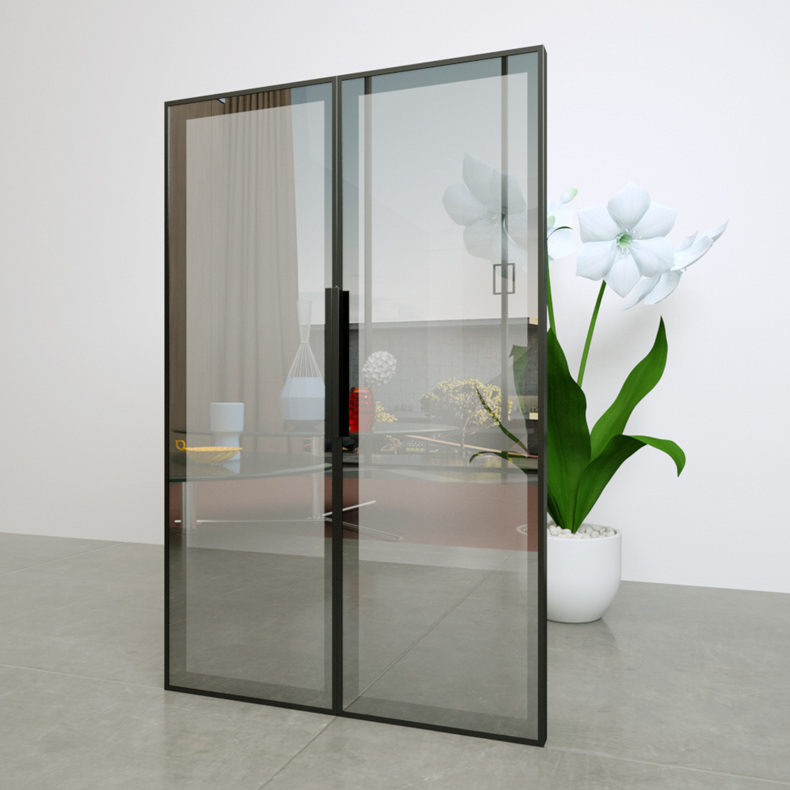 铝合金钢化玻璃衣柜平开门定制透明茶色酒柜门对开门