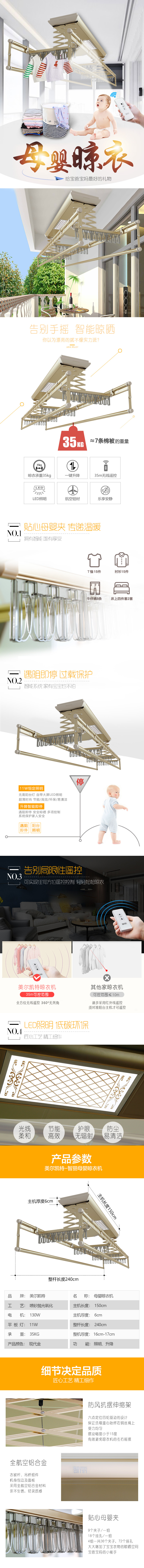 美尔凯特 集成吊顶高端阳台智能四杆母婴晾衣机电动升降晾衣架