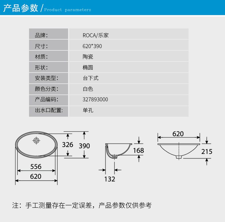 乐家卫浴 碧卡台下式洗脸盆 洗漱盆 洗手盆