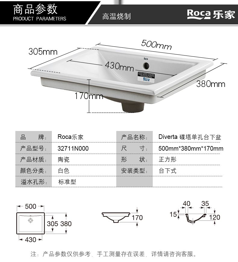 乐家卫浴 碟塔台下式洗脸盆 洗漱盆 洗手盆