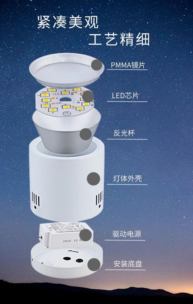 产品描述:LED筒灯 悦雅 7W 4寸 明装 白色