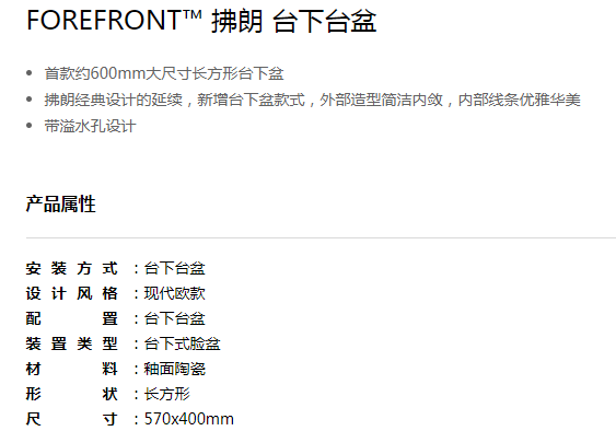 科勒洁具 拂朗台下盆 K-2949T-0 陶瓷盆洗手盆洗脸盆 .