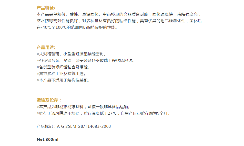 名鹰 MY668高效型高级酸性硅酮密封胶/高级酸性玻璃胶