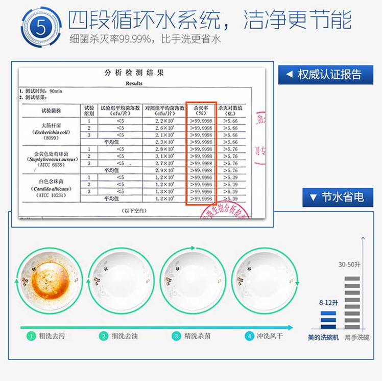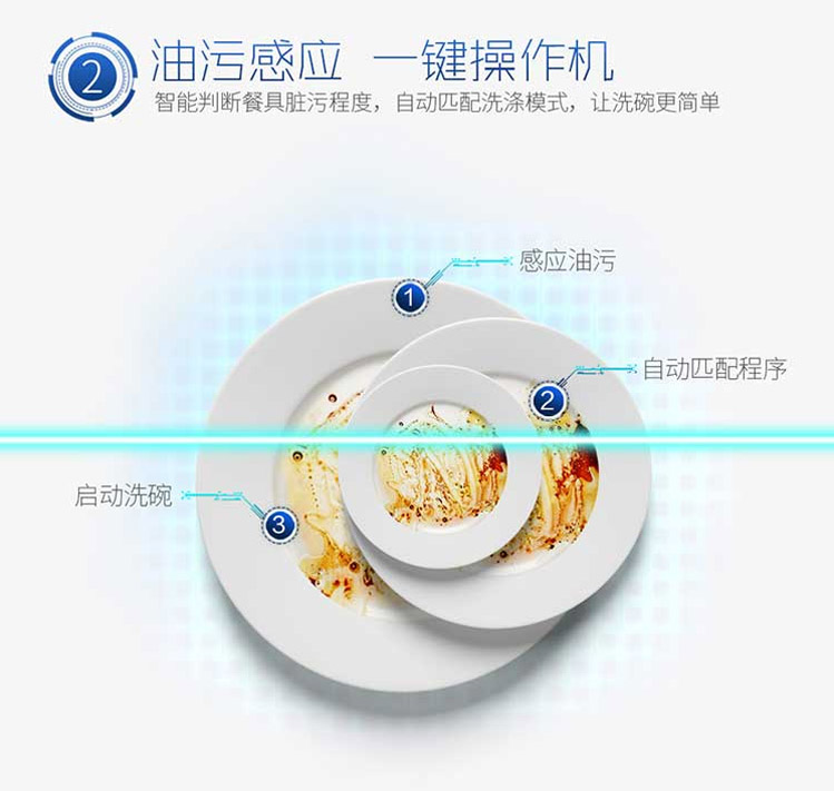 2、全智能检测餐具脏污系统,智能制定洗涤程序:可以根据餐具脏污程度不同制定不同洗涤时间、水温温度等