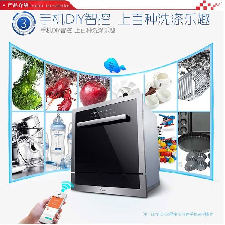 WIFI控制+APP功能 全智能检测餐具脏污系统,智能制定洗涤程序 零水渍风机烘干系统 自定义洗涤程序功能