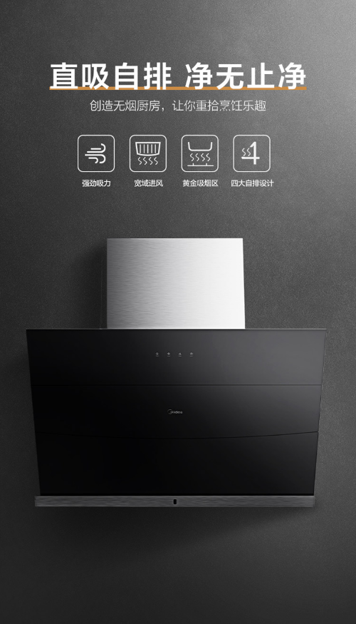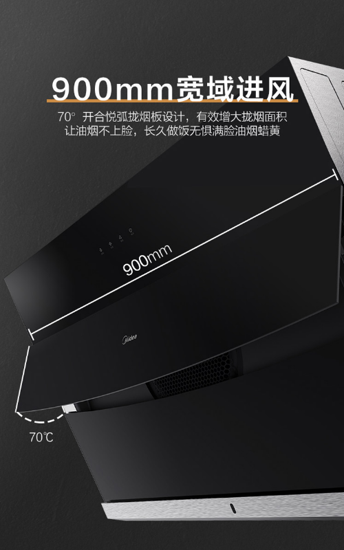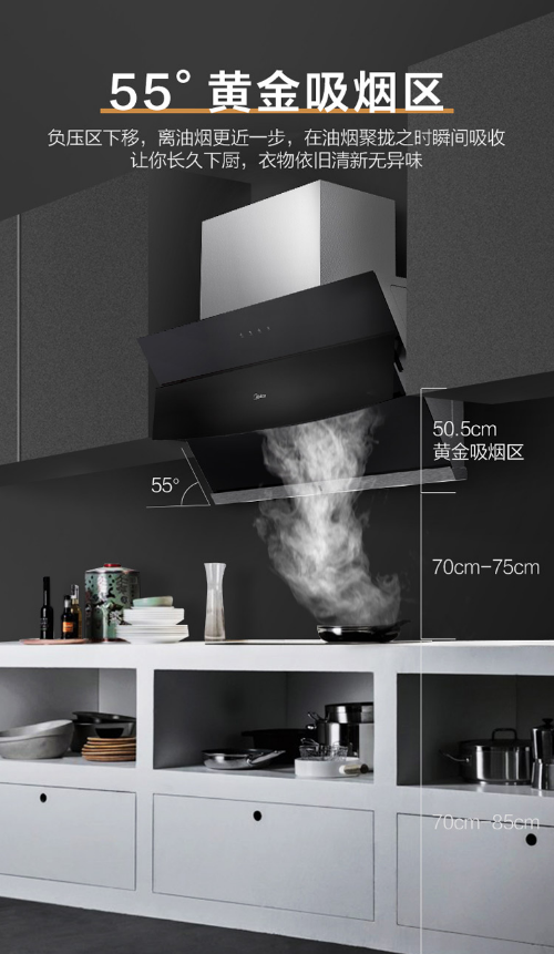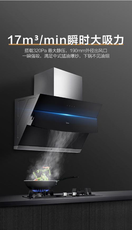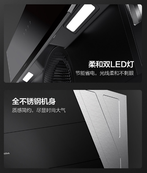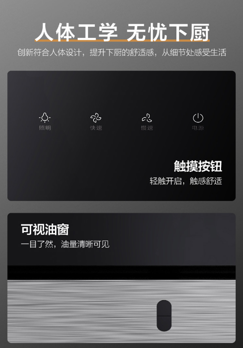 16立方大风量 不锈钢机身 中置触摸按键控制 两段面板、自动开合,拢烟效果更优