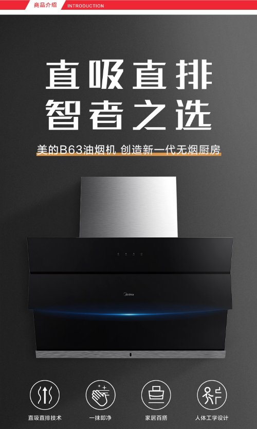 美的(Midea) CXW-200-B63 侧吸 油烟机 钢化玻璃