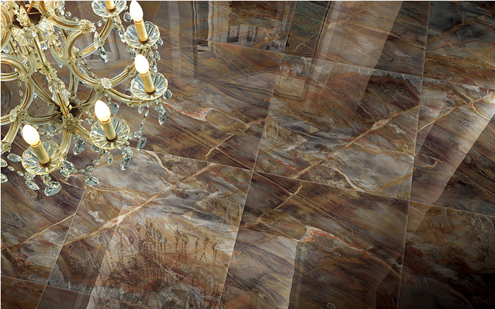 在石材整体感设计上,创新运用结合瓷砖数码喷墨技术;跨界运用,传递时尚: