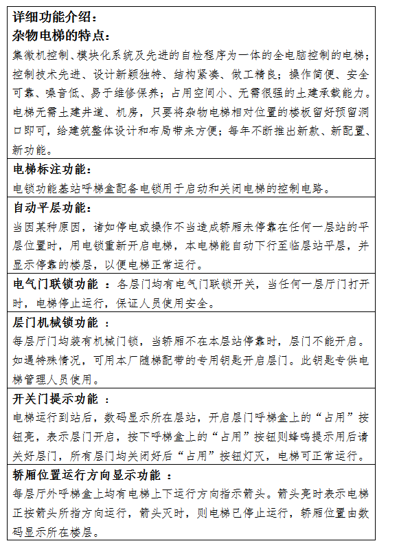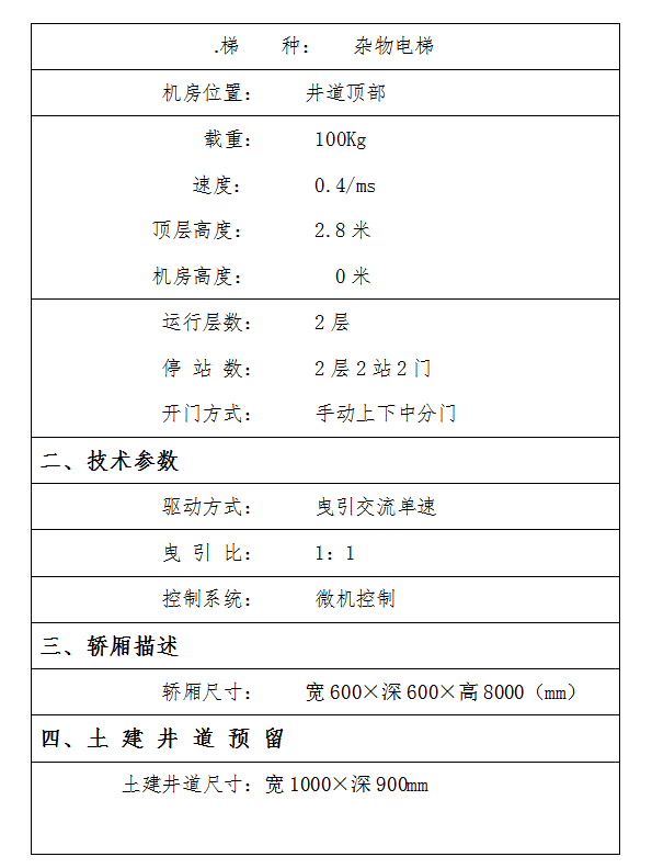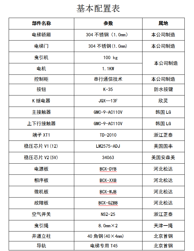 备注:如上面报价+一层电梯,加收3000元,+内门加收2000元。如需200公斤曳引机加收1000元。