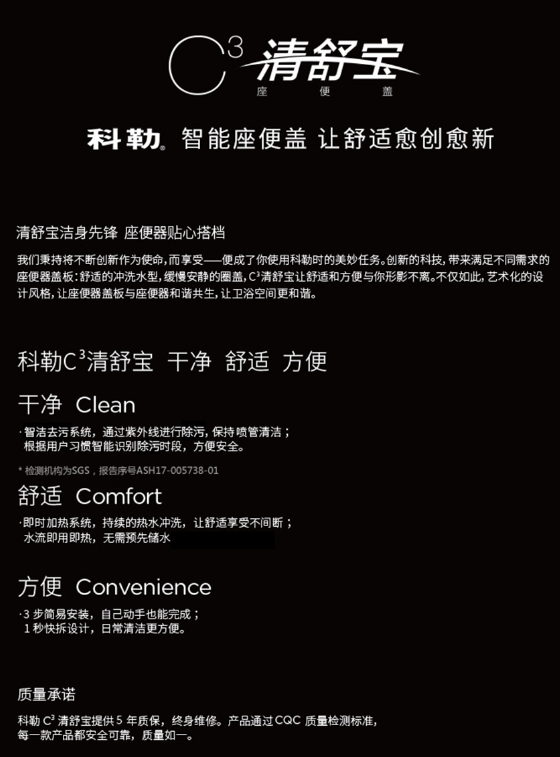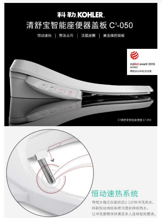 科勒洁具 K-18751T-0 C³050 清舒宝智能便盖 智能马桶盖\坐便盖 .