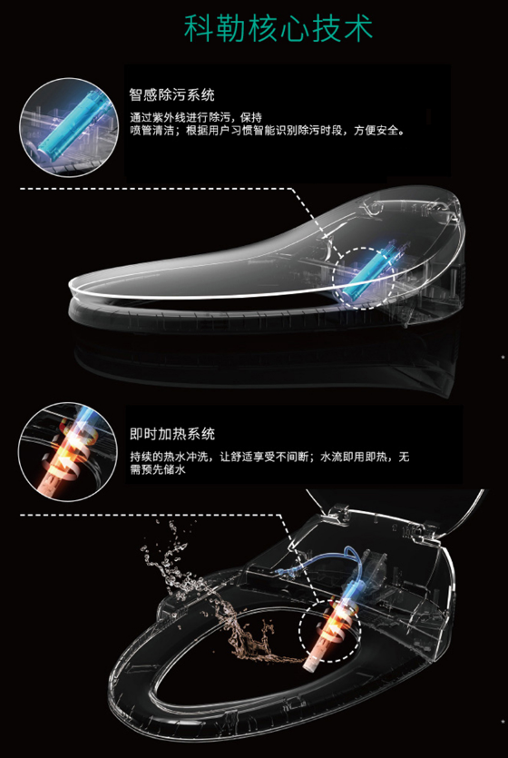 恒动速热系统:带来持续的热水冲洗,让冲洗更畅快并满足多人连续使用需求。