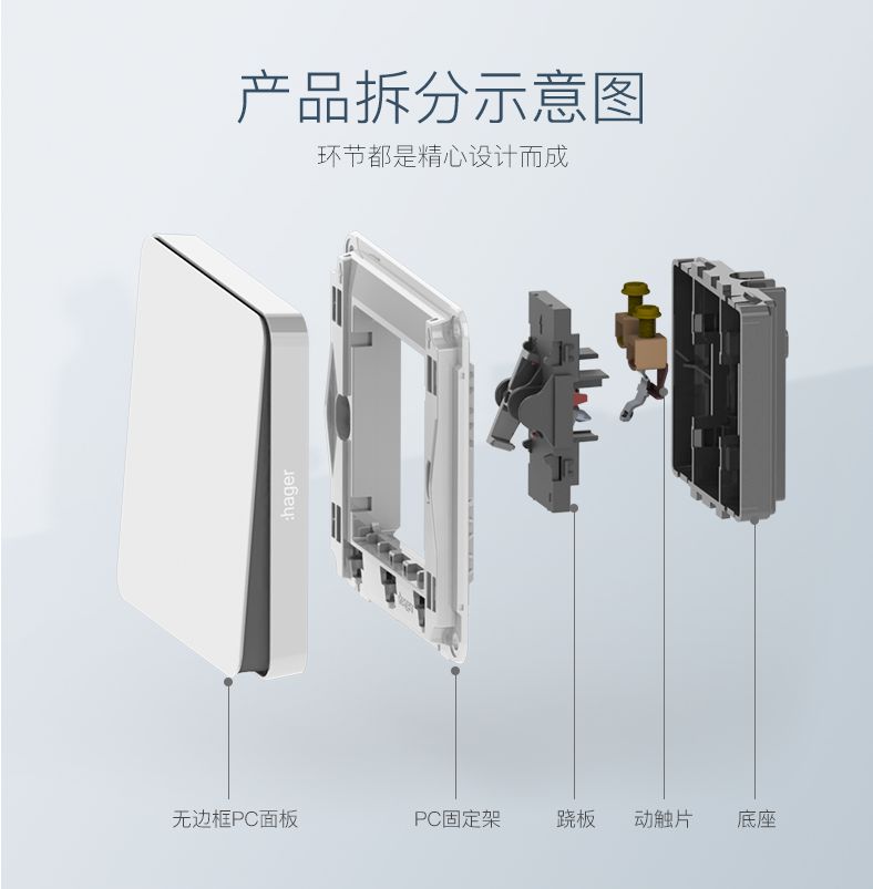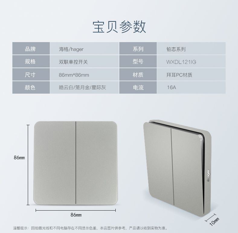 德国海格电气/HAGER铂志16AX双联双开单控开关面板电灯开关
