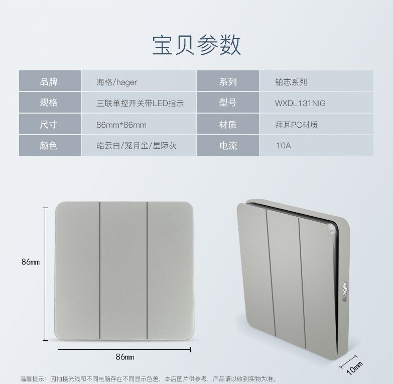 德国海格电气/HAGER 10AX 三联单控开关带LED指示
