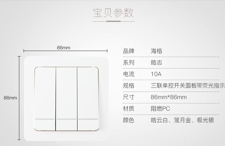 德国海格/HAGER 皓志 10AX 三联单控开关带荧光