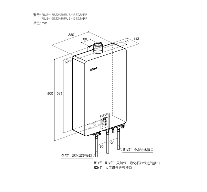林内 智能恒温强排式燃气热水器 RUS-13E22AR 13升