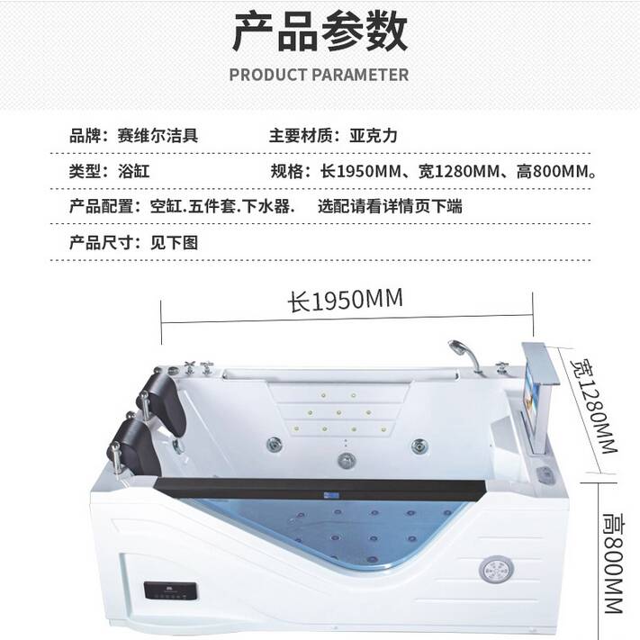 赛维尔卫浴双人豪华按摩浴缸1950X1280X800 X-108