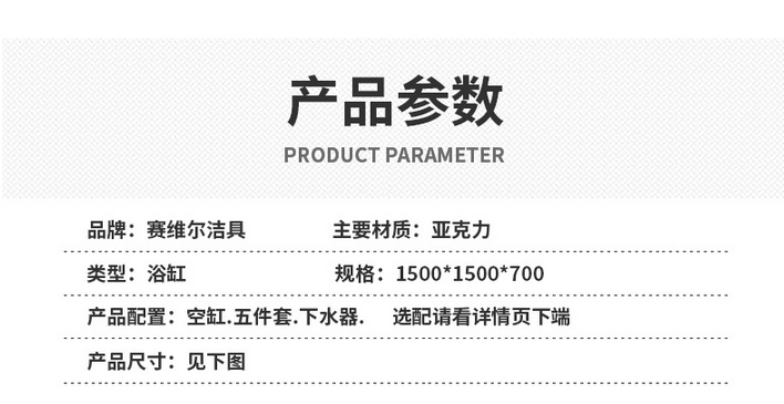 赛维尔卫浴双人豪华按摩缸(蓝玻)1500×1500×700 X-304浴缸浴池
