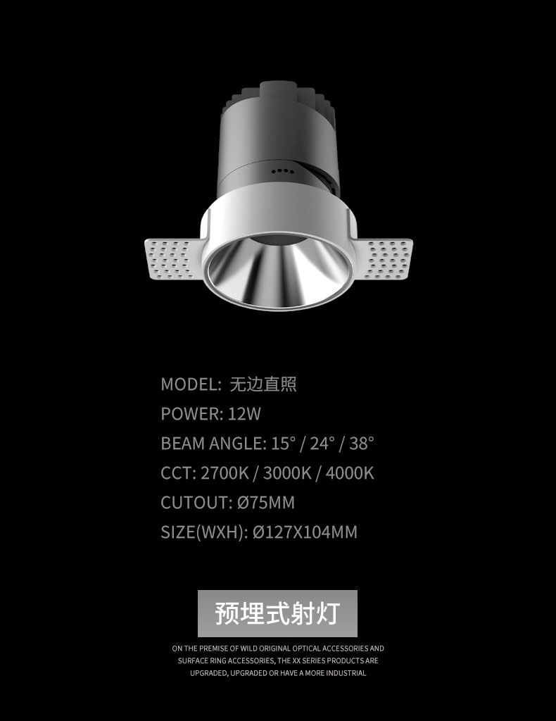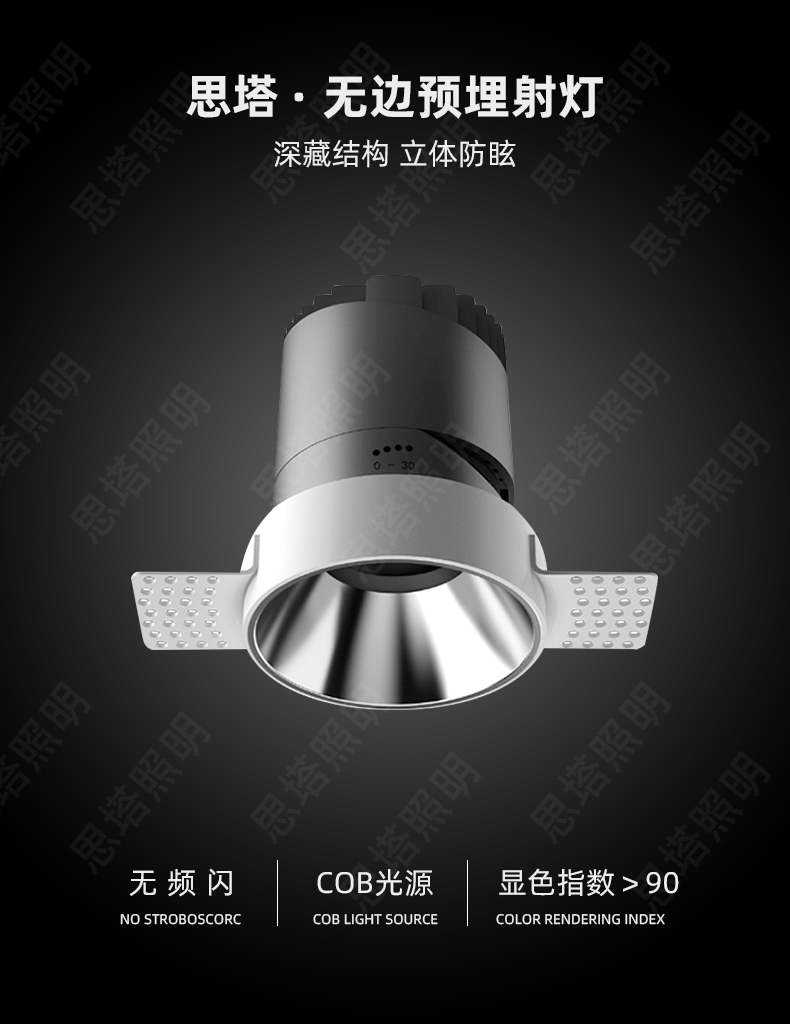 思塔照明无边射灯12w ST-A12W75-YN灯具灯饰