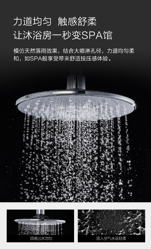 1.太阳花洒:空气能双增压单功能太阳花洒,液态硅胶