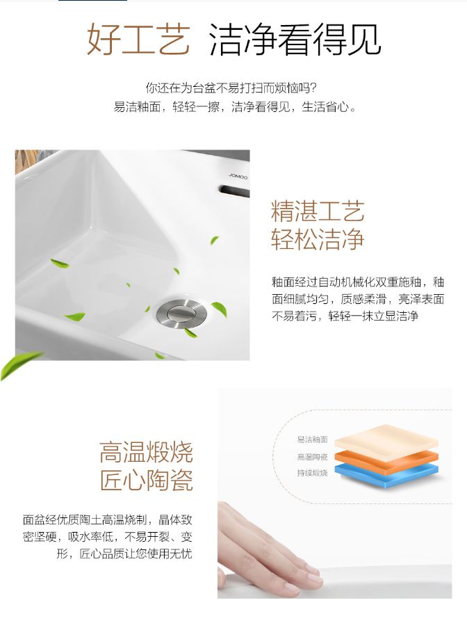 1、自洁釉 2、下水孔规格ø45mm 3、带溢水孔