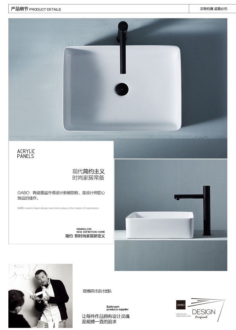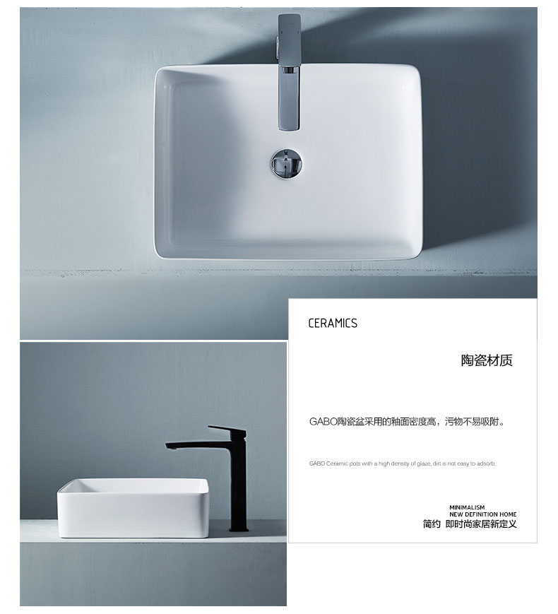 方正 棱角 个性 方形 台上盆 哑光陶瓷质感 薄边设计简约时尚