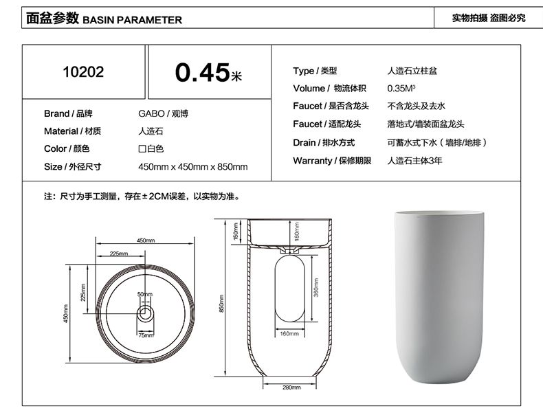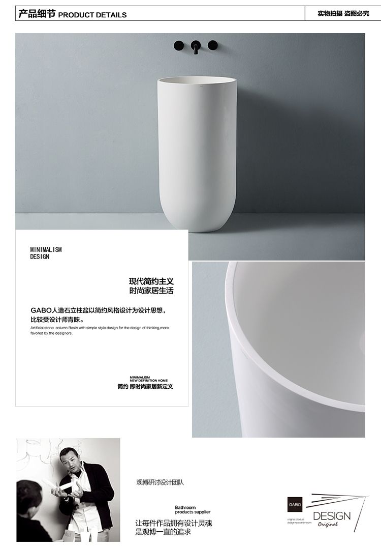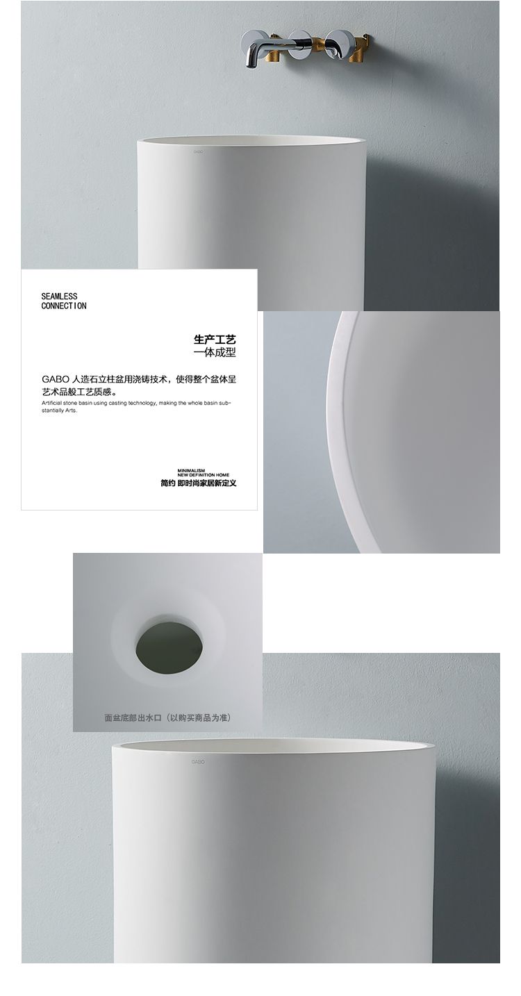 观博卫浴 人造石立柱盆 圆形柱式洗手盆艺术盆 10202 洗脸盆面盆