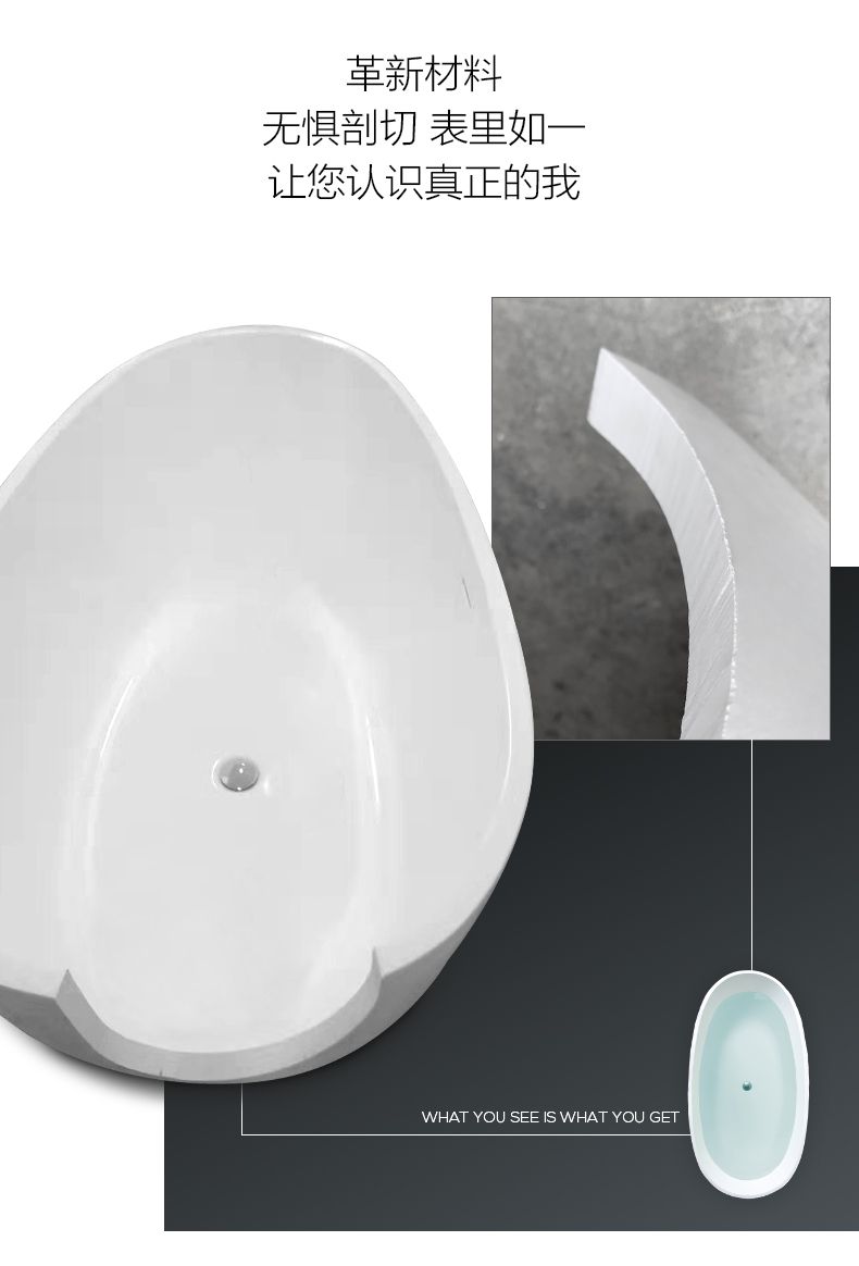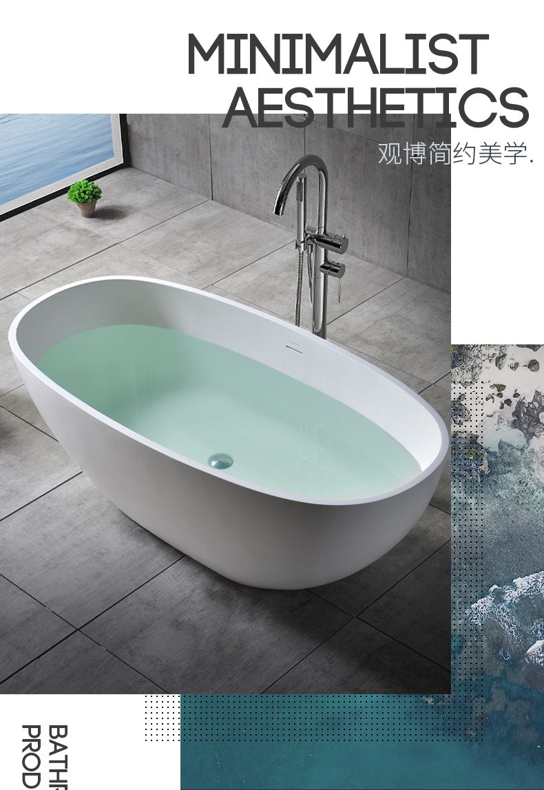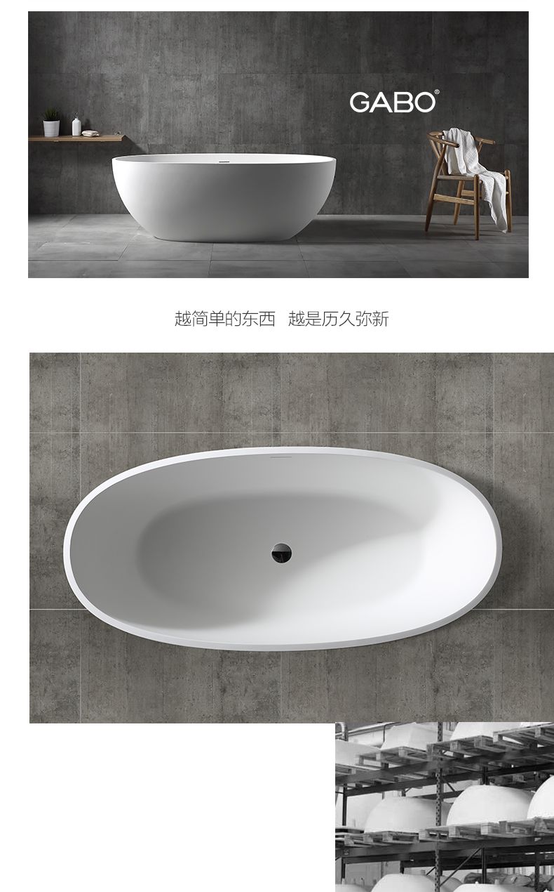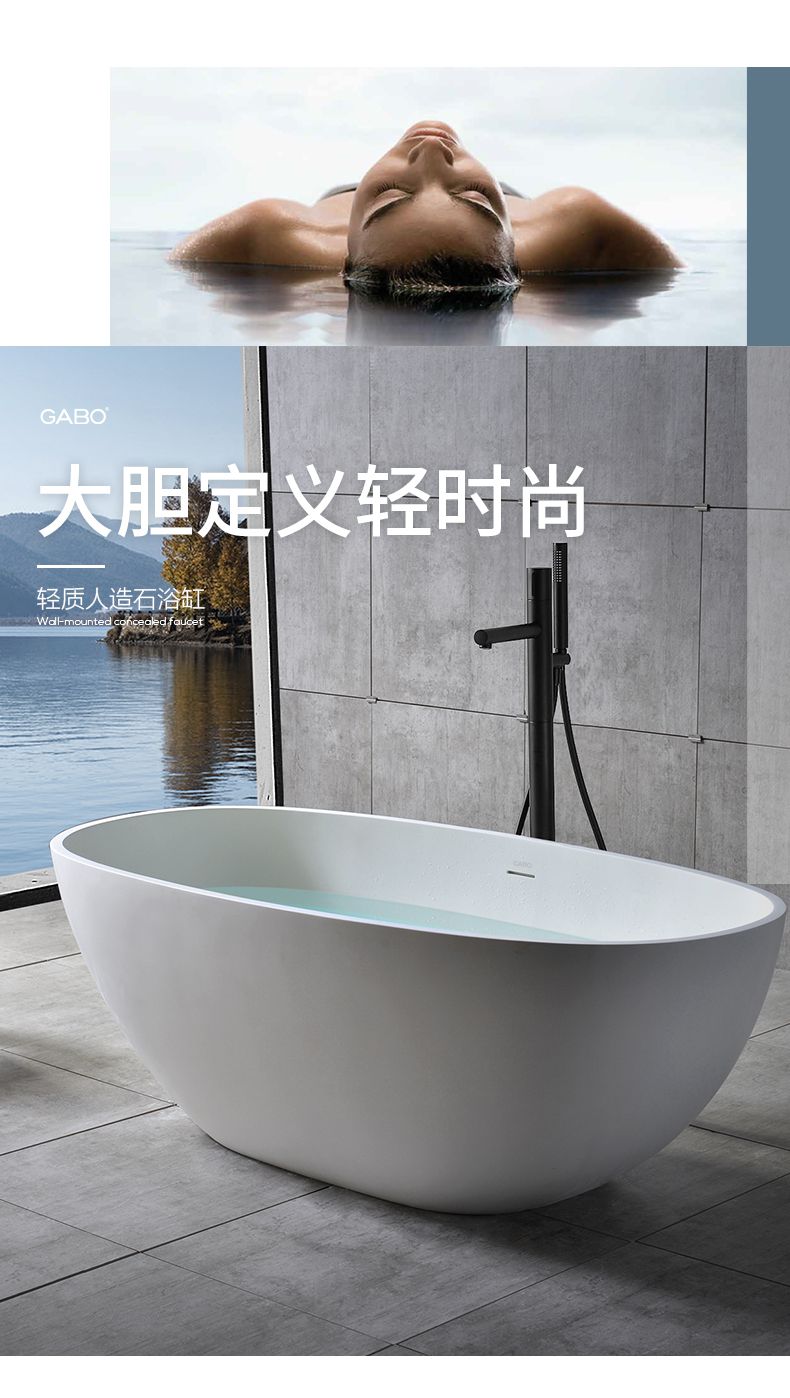 观博卫浴 轻质人造石浴缸 卫生间泡澡独立式薄边浴缸 GBZ8628