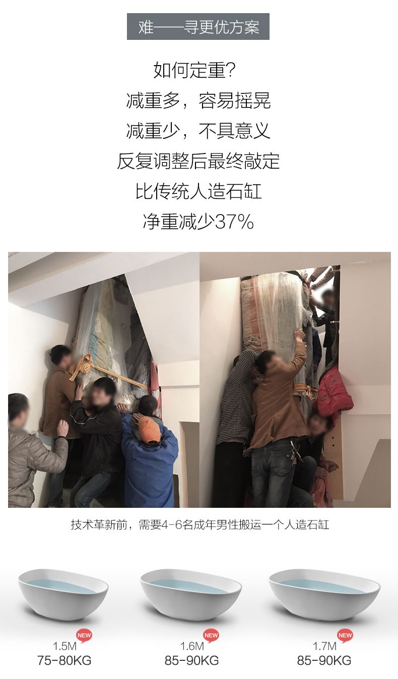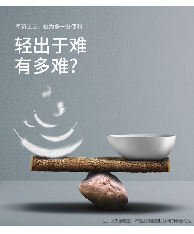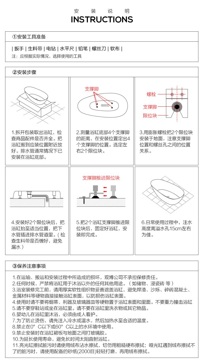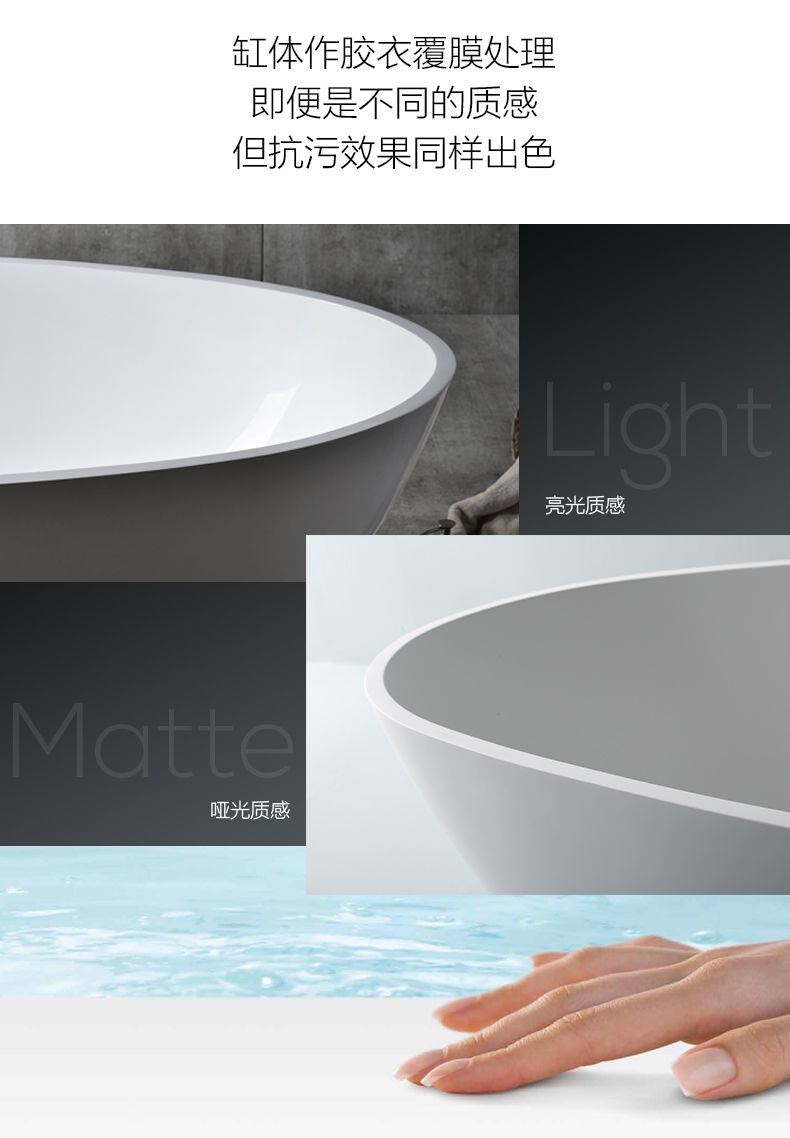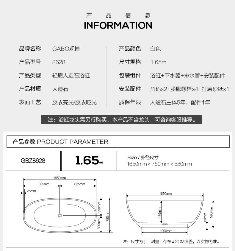 观博卫浴 轻质人造石浴缸 卫生间泡澡独立式薄边浴缸 GBZ8628