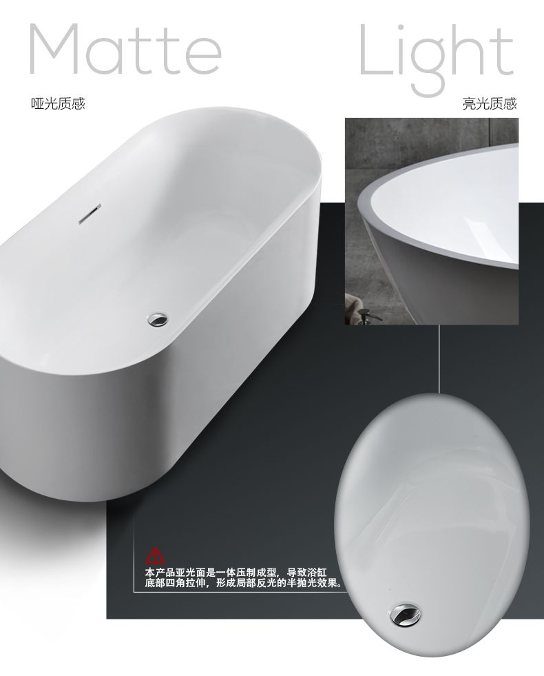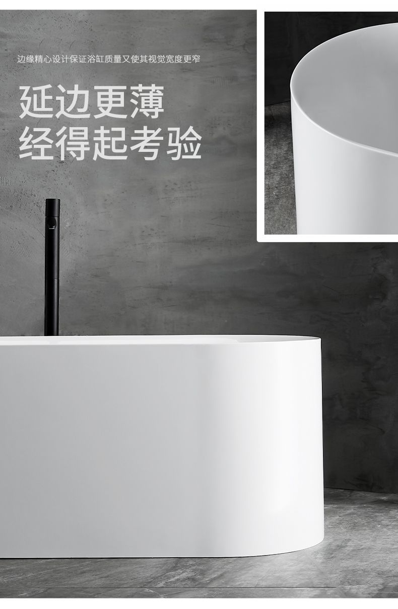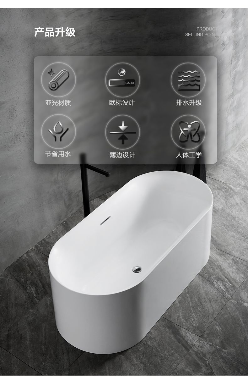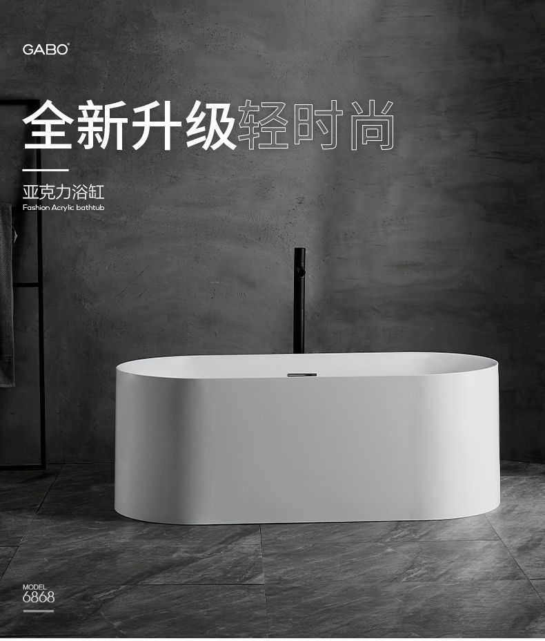观博卫浴 亚克力哑光浴缸家用独立式冲浪小户型按摩浴缸 超薄边亚光浴缸 6868