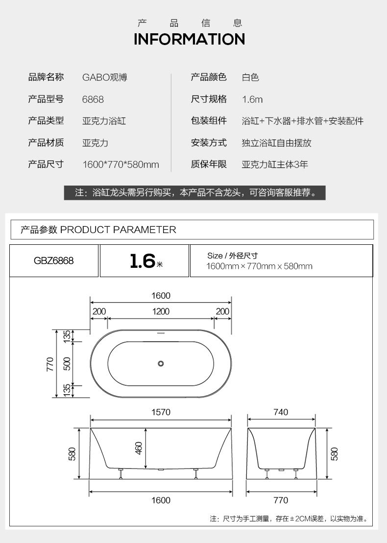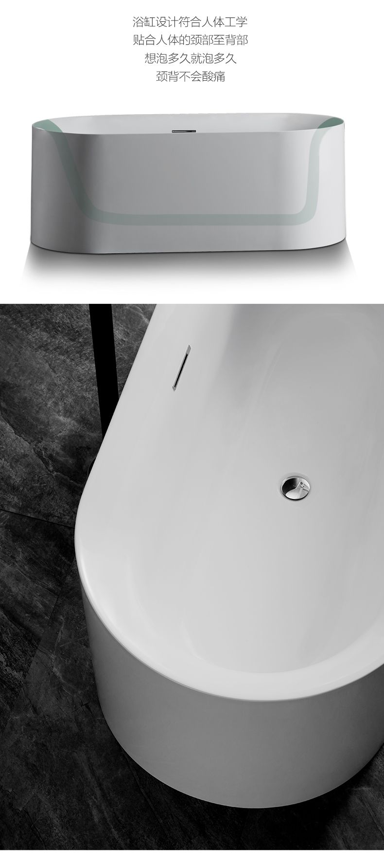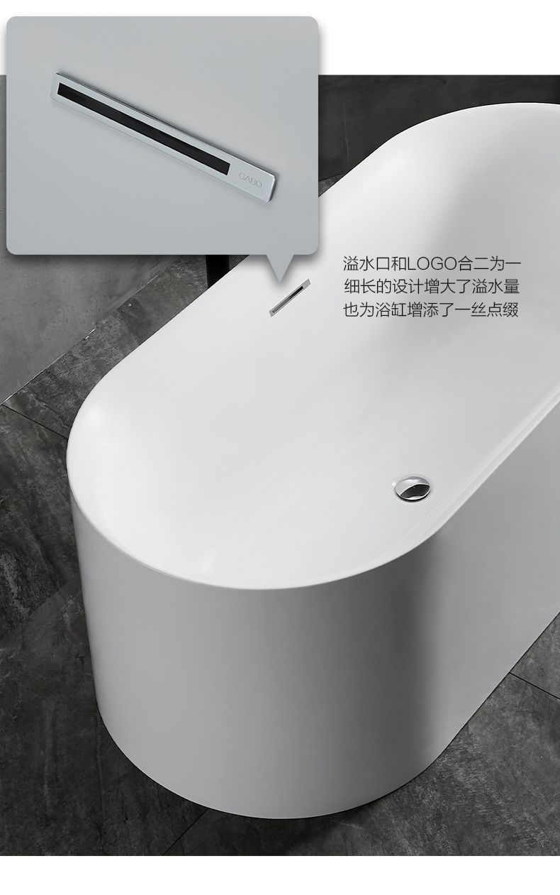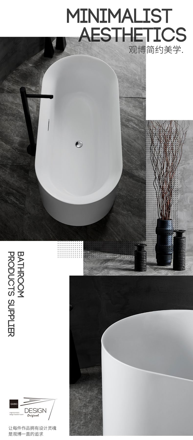 观博卫浴 亚克力哑光浴缸家用独立式冲浪小户型按摩浴缸 超薄边亚光浴缸 6868