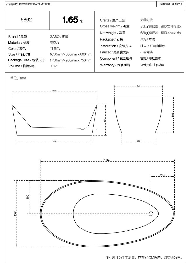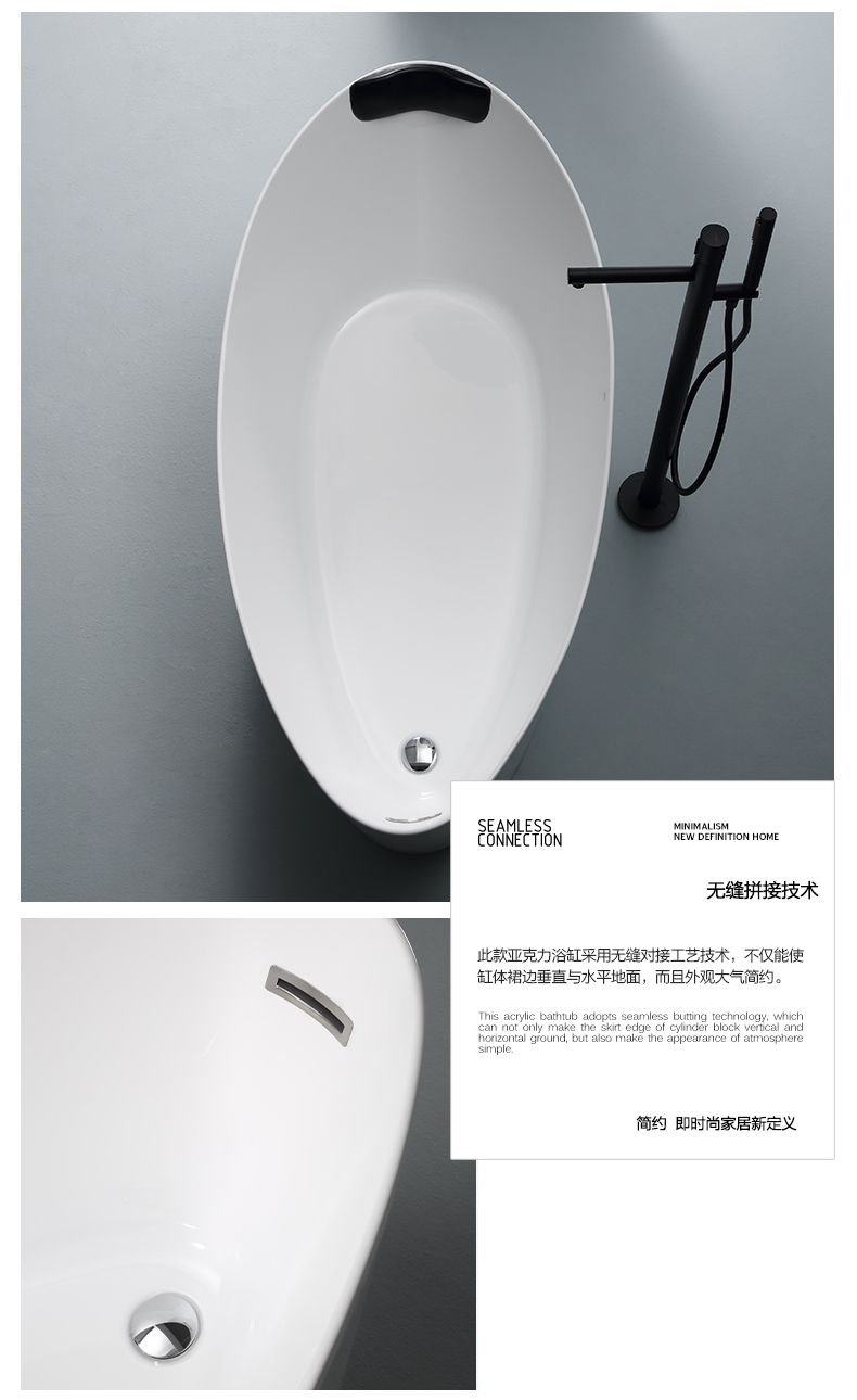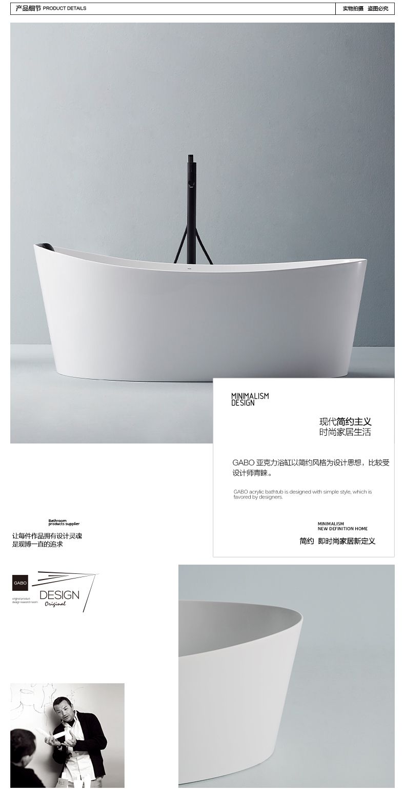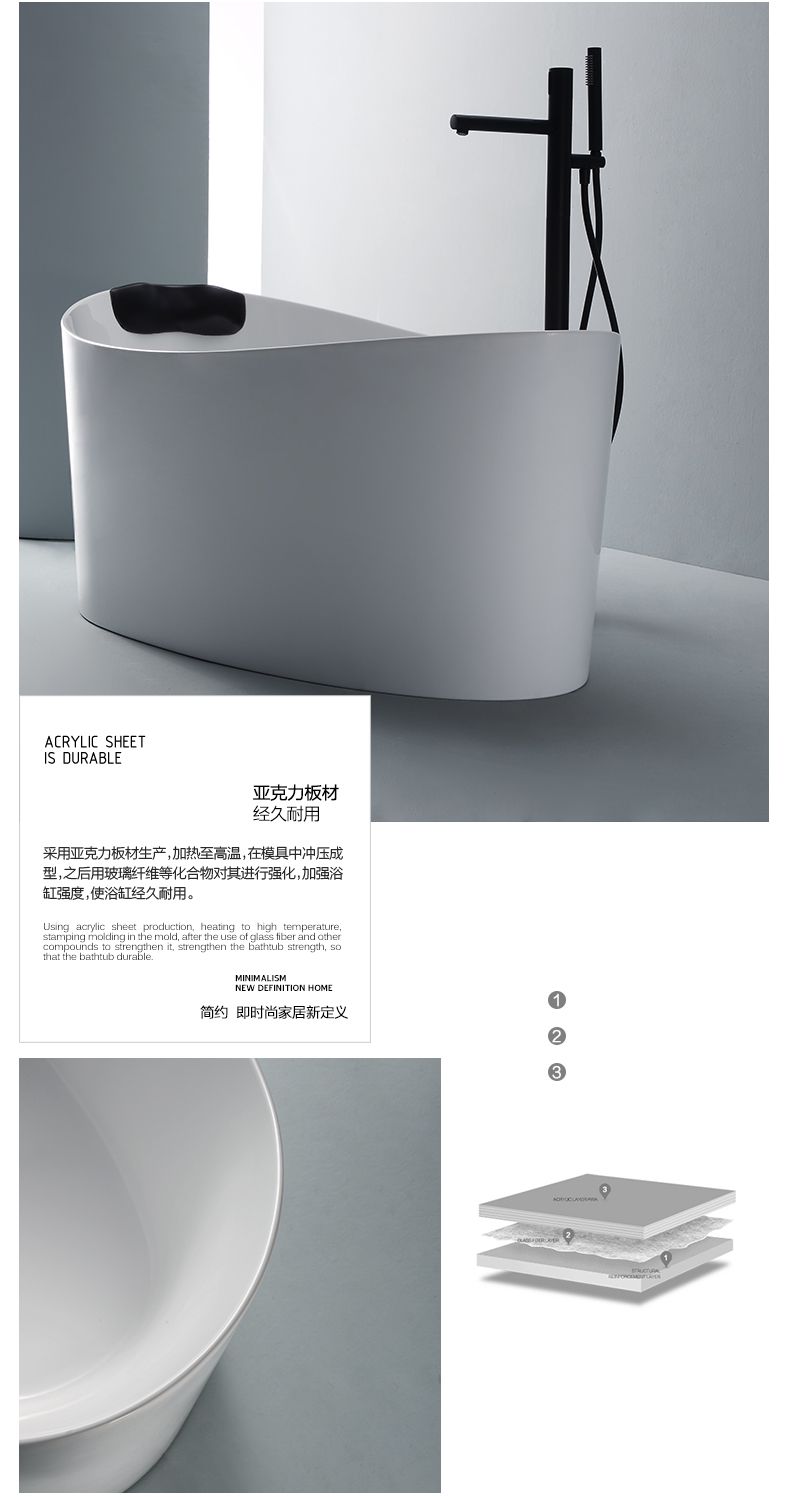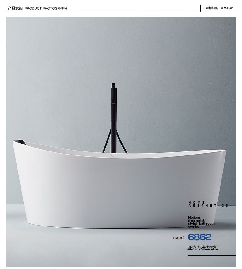 观博卫浴 独立式薄边浴缸家用亚克力浴缸小户型浴缸 6862