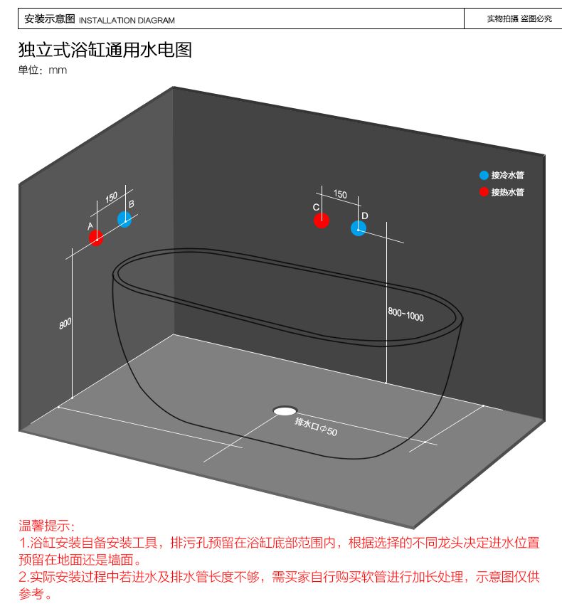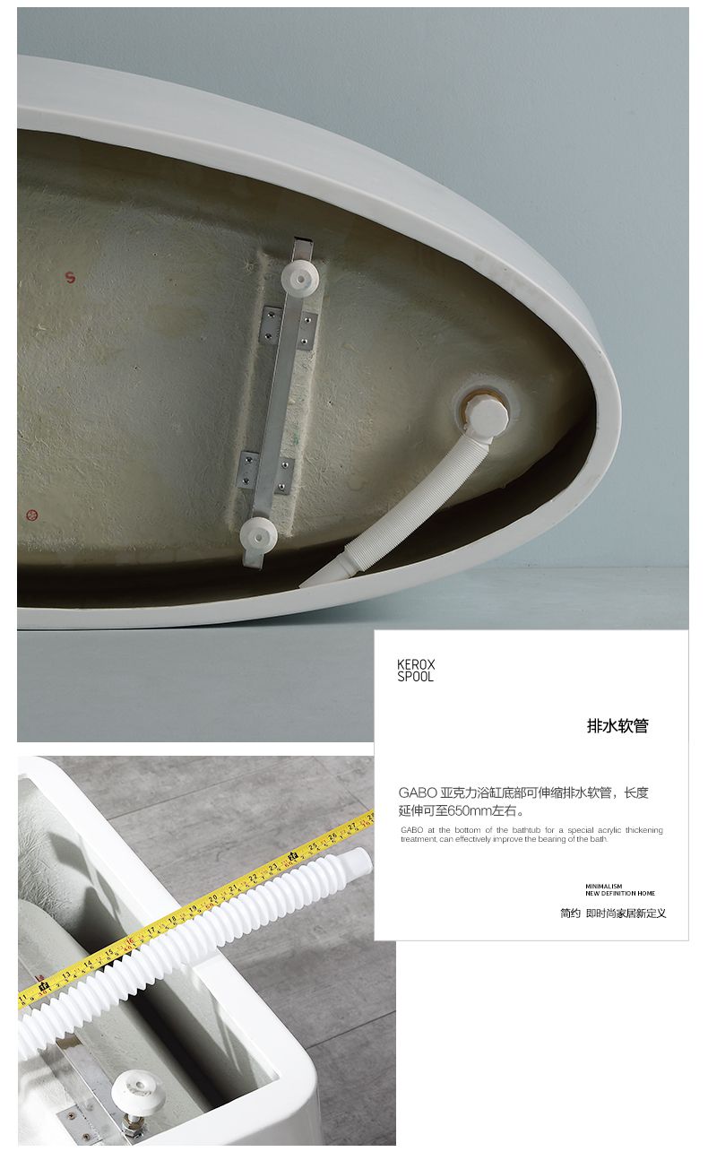 浴缸配置:脚踏下水+隐藏式溢水