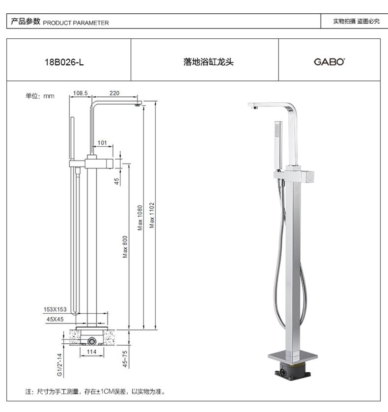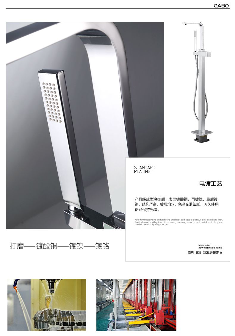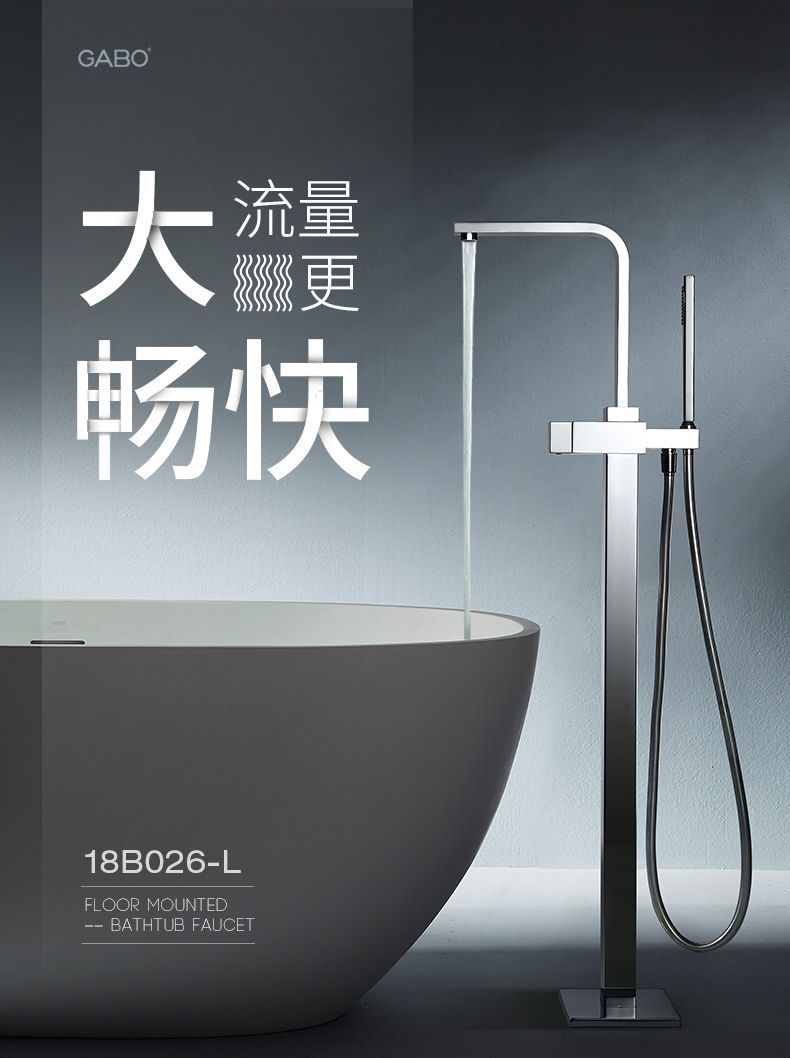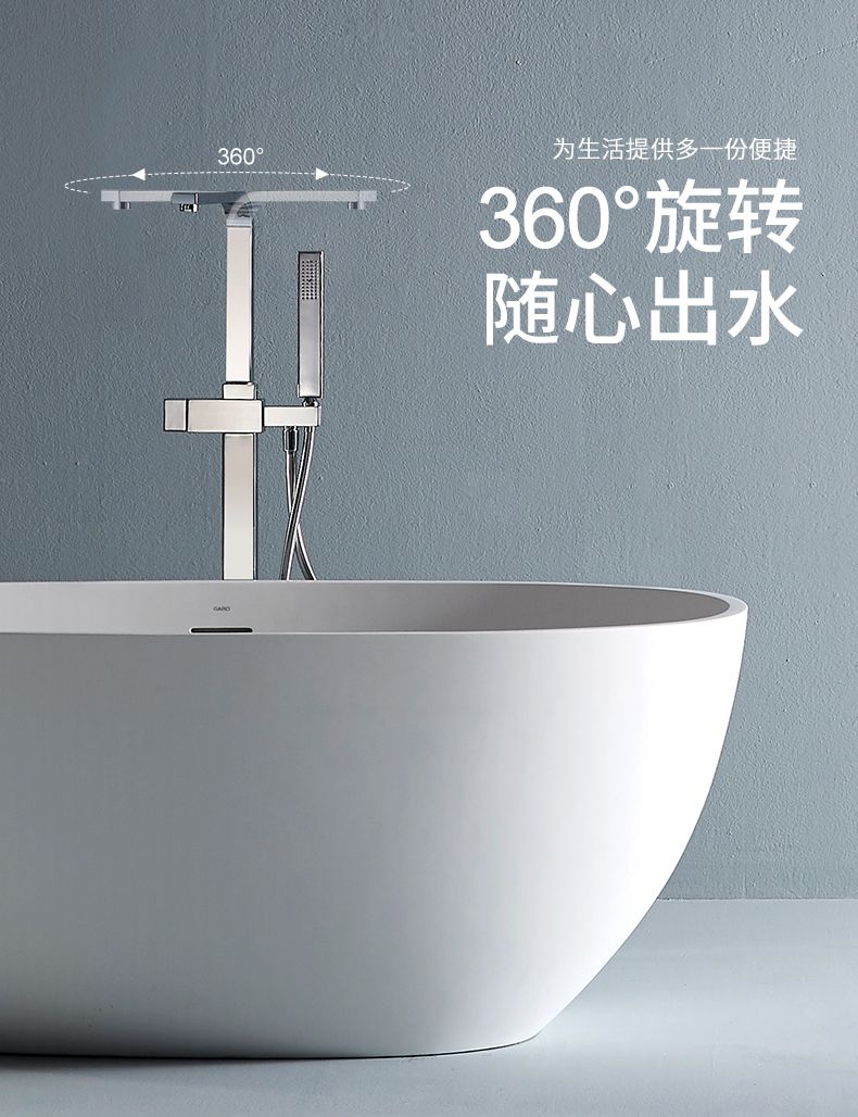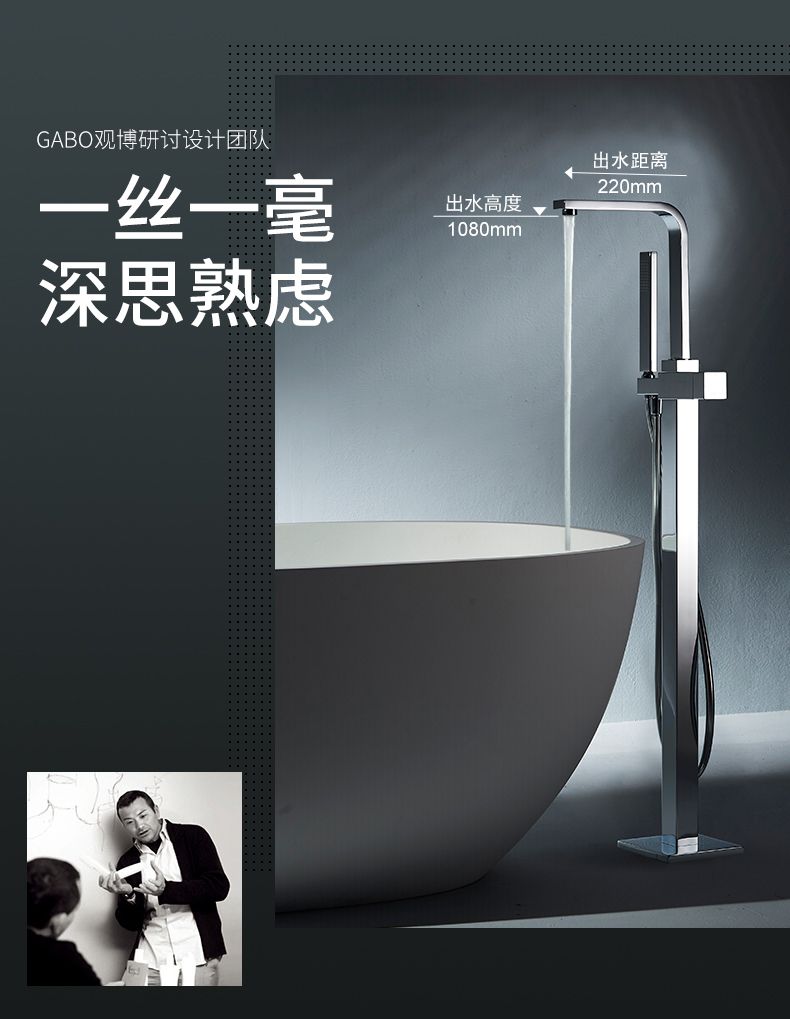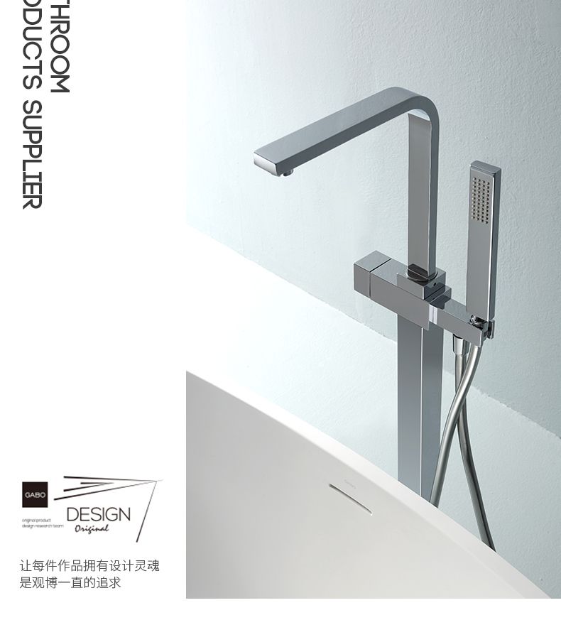 观博卫浴 独立式浴缸龙头单控缸边手持花洒 18B026-L 可旋转落地式浴缸水龙头