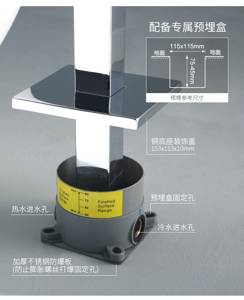 产品配置:铜手持花洒 PVC花洒软管 预埋盒