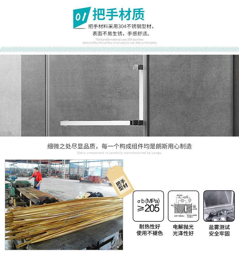 LENS朗斯淋浴房定制卫生间浴室屏风方形隔断钢化玻璃门 圣蒂B31