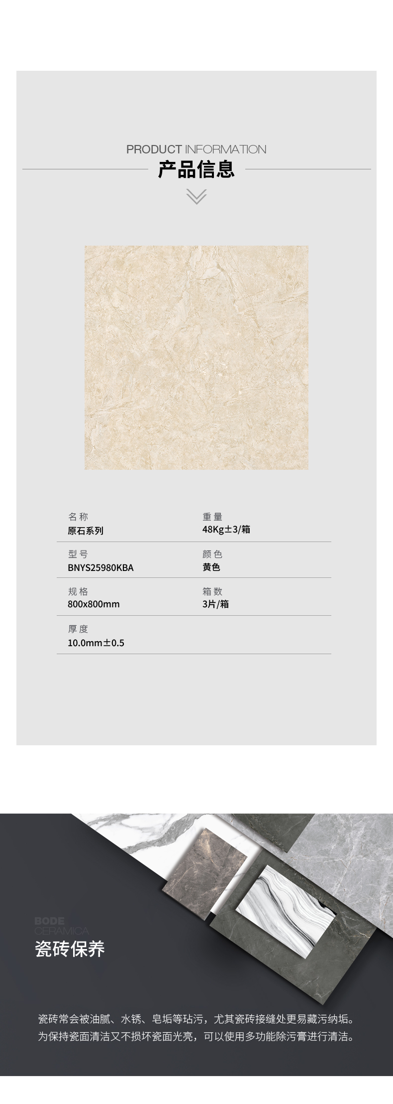 博德瓷砖 原石800x800全抛釉客厅地砖 现代新中式风格 耐磨瓷砖