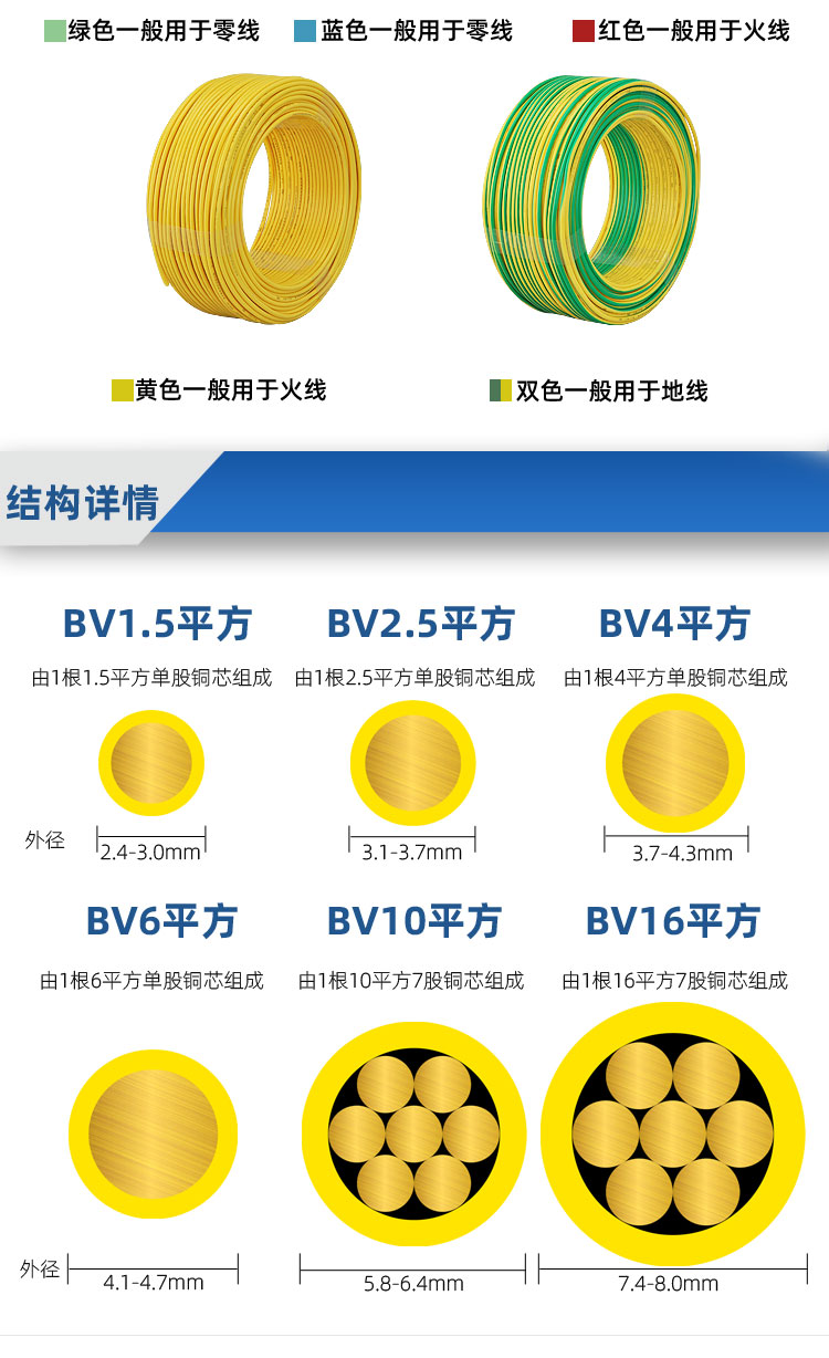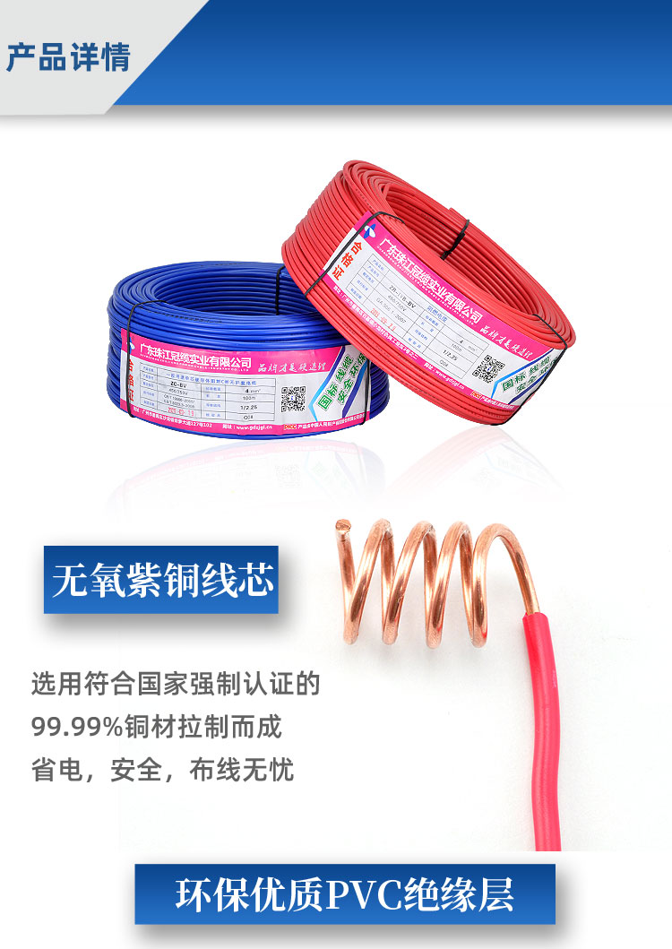 珠江冠缆 BV电线 铜芯线家装电缆 1 1.5 2.5 4 6纯铜阻燃单芯硬线