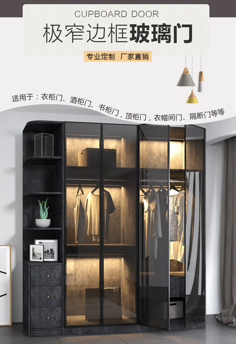 铝合金钢化玻璃衣柜平开门定制透明茶色酒柜门对开门