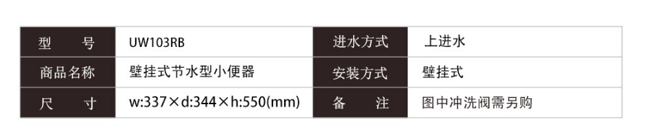 名称:壁挂式节水型小便器 材质:陶瓷 型号:UW103RB